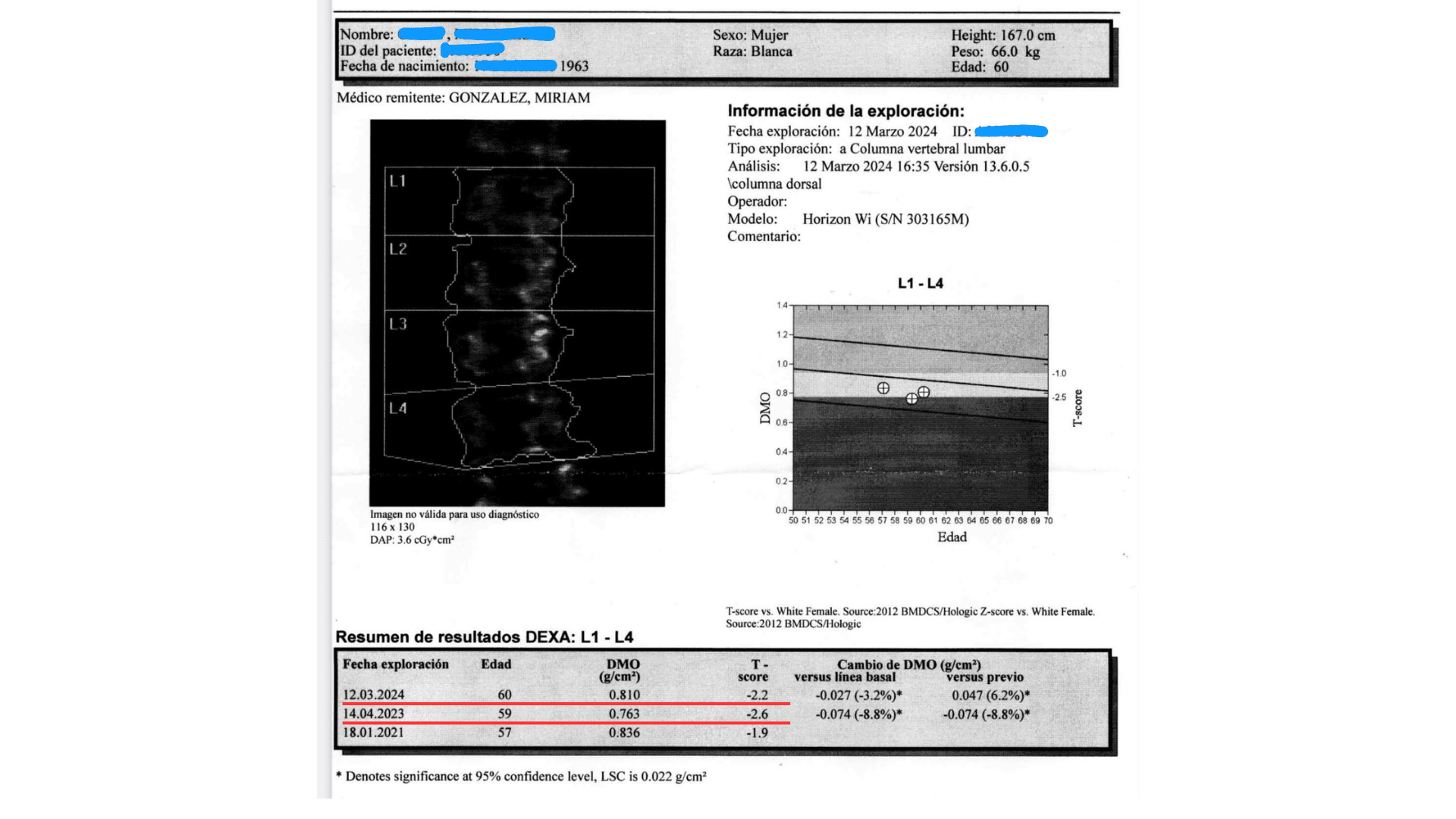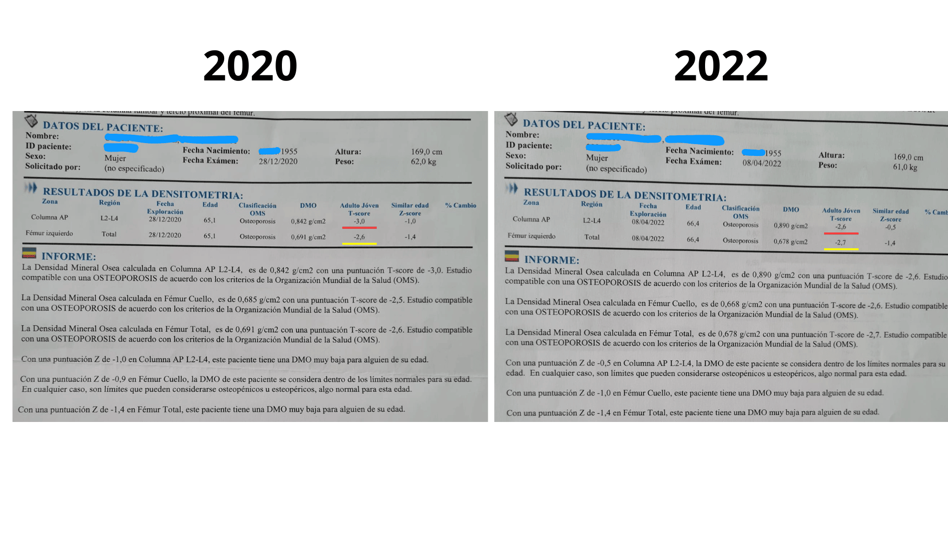 Hace unos años, a mi madre le diagnosticaron osteoporosis severa. Cadera y vértebras en niveles críticos.