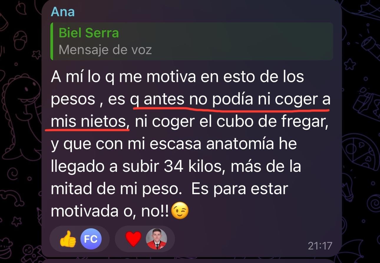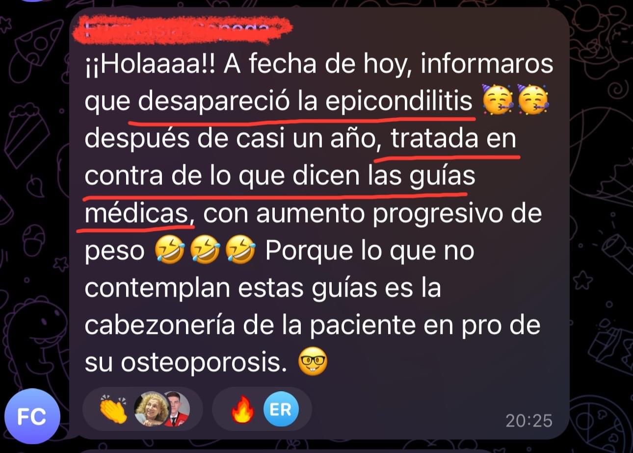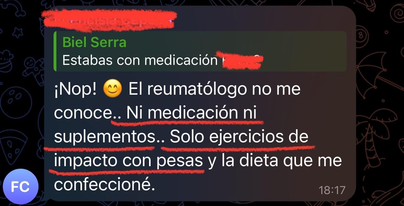 Con un plan de solo dos sesiones por semana, adaptado a su situación, pasamos de osteoporosis a osteopenia en un año. Y lo más importante: recuperó la confianza en su cuerpo.
