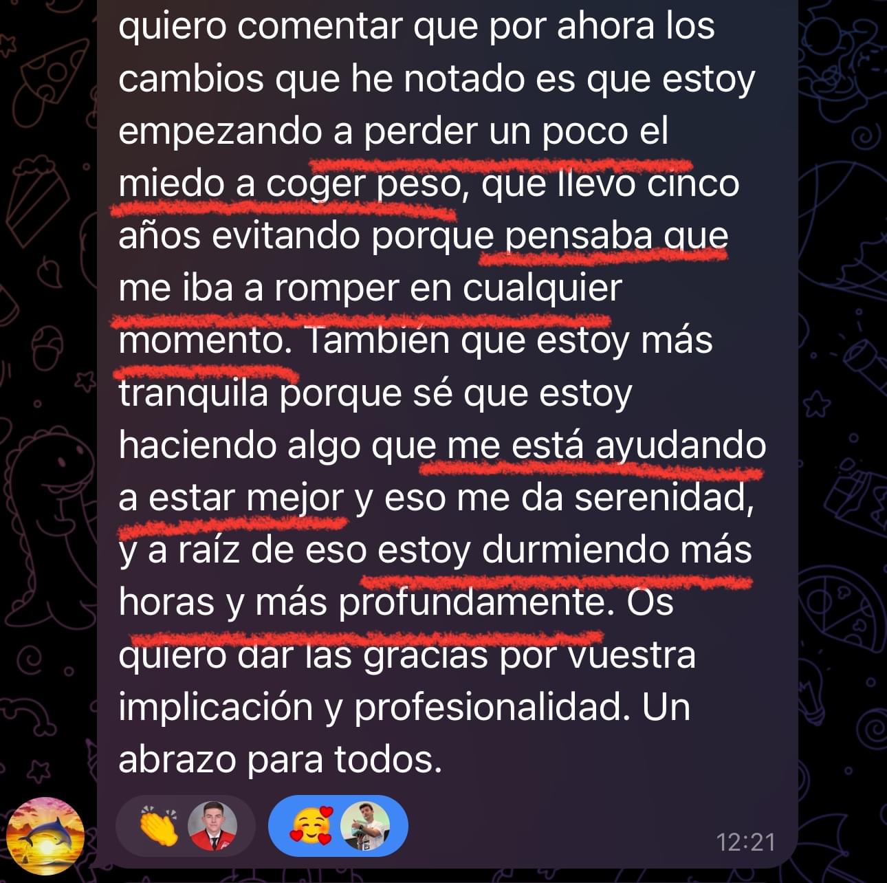 Hay un antes y un después desde que empecé. Más fuerte, más activa y casi sin dolor